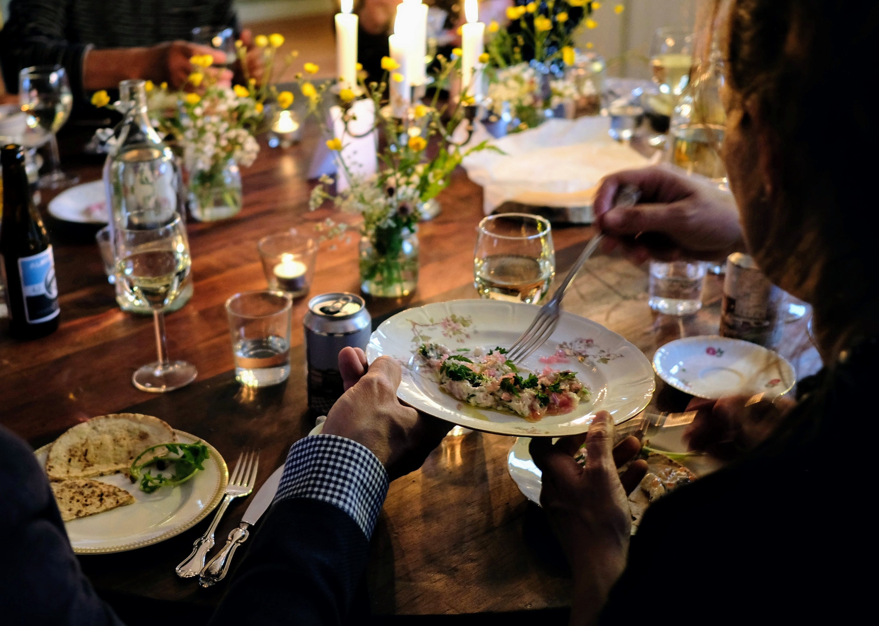 Nästan allt vi serverar kommer från vår sjö, skog och jord, på så sätt har vi koll på råvaran, kan utveckla vår matlagning med dem och begränsas på ett kreativt sätt. Men det är klart, hittar vi något exceptionellt utanför gården, är vi för svaga för att motstå det.